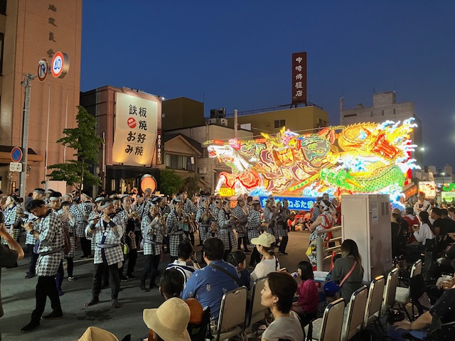 夜になり、“ねぶた祭り”が始まると、その壮大で華やかな山車と大群衆による乱舞に目を見張りました。そして、踊る人たちが若い人たちであふれているのには驚きました。このようにして祭りが継承されるのですね。