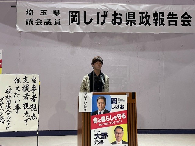ブローハン君が私の県政報告会で「児童養護施設」での経験を語ってくれました。