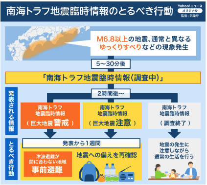 昨日16時43分に発生した日向灘を震源としたマグニチュード7.1の地震で、気象庁が“南海トラフ地震臨時情報(巨大地震注意)”を発表したという報道で緊張しました。