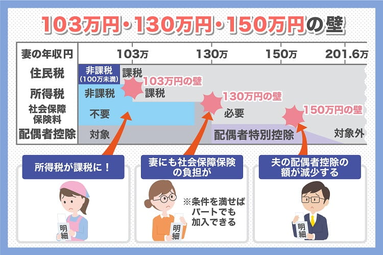 1970年代から1980年代、日本のパートタイムの平均時給は600円~700円台でした。当時の経済状況を考慮し、税制を整備する際に「最低限の生活ができる程度の収入」として、年間103万円が一つの基準とされたのです。また、1日あたりの労働時間が4~5時間程度で、週5日間働く場合の月収が約8万円~9万円、年間収入が 約100万円前後という働き方で得られる収入が、当時の扶養範囲や最低限の生活基準に合致していたのです。しかし、今は大変物価が上がり時給も上がっていますので、103万円では最低限の生活は出来ません。