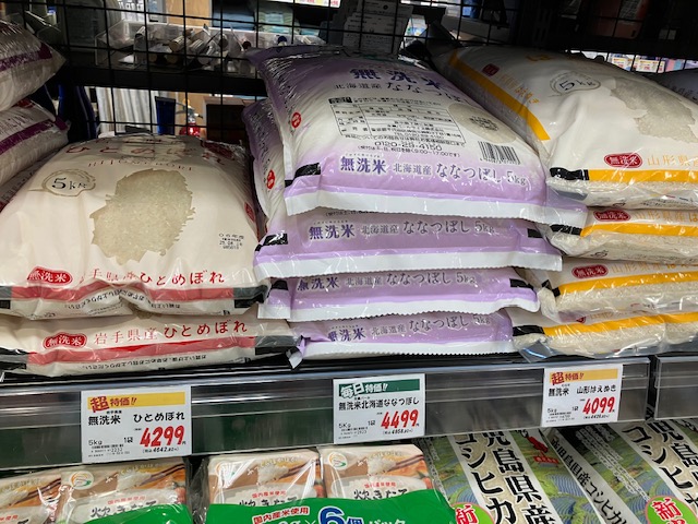 そこで、近くのスーパーに行って見たところ、5㎏1980円の「備蓄米」が店頭に山積みされていて売れ残っている状況でした。一方、その他のコメの価格は5㎏4000円~4500円で以前と変わらず値下がりしていませんでした。