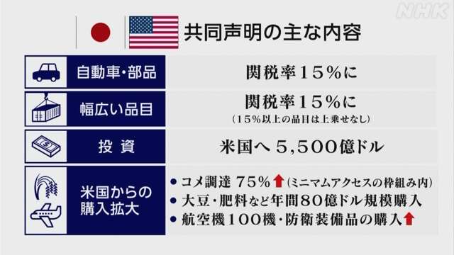 しかし、農産物の年間1兆円の輸入や米国産コメの輸入拡大、特に米国への80兆円の投資に関しては、米国の要求通りでした。